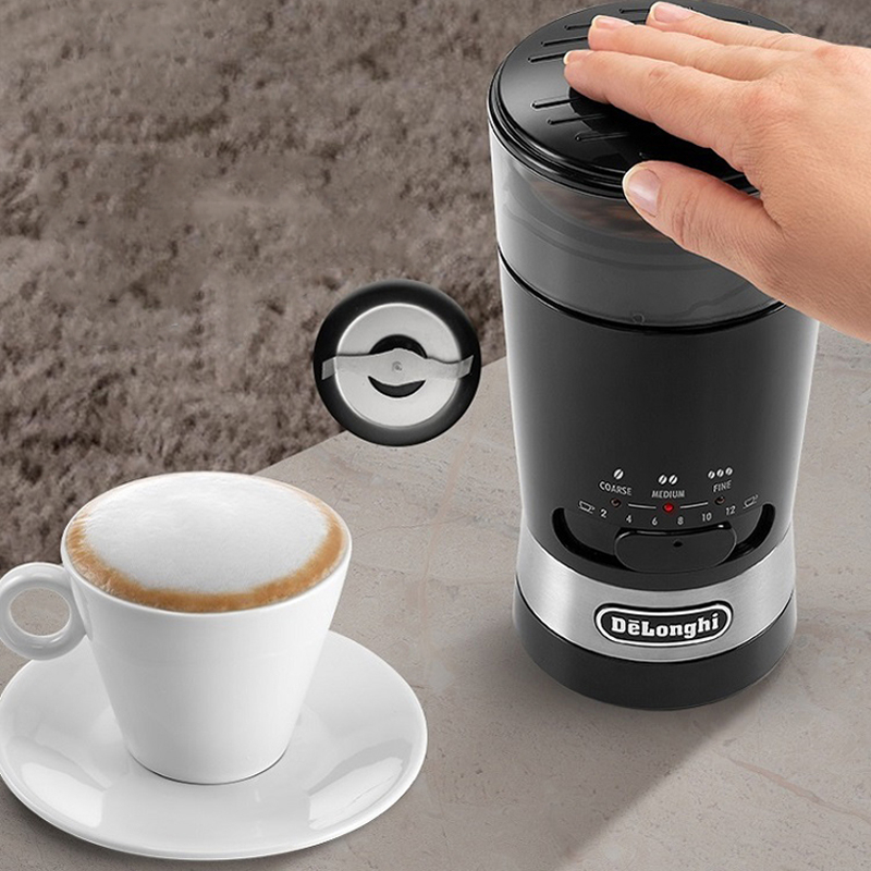 DeLonghi Moulin à café 90 grammes, Lames en Acier, électrique pratique et multifonctionnel pour un contrôle parfait de la mouture.